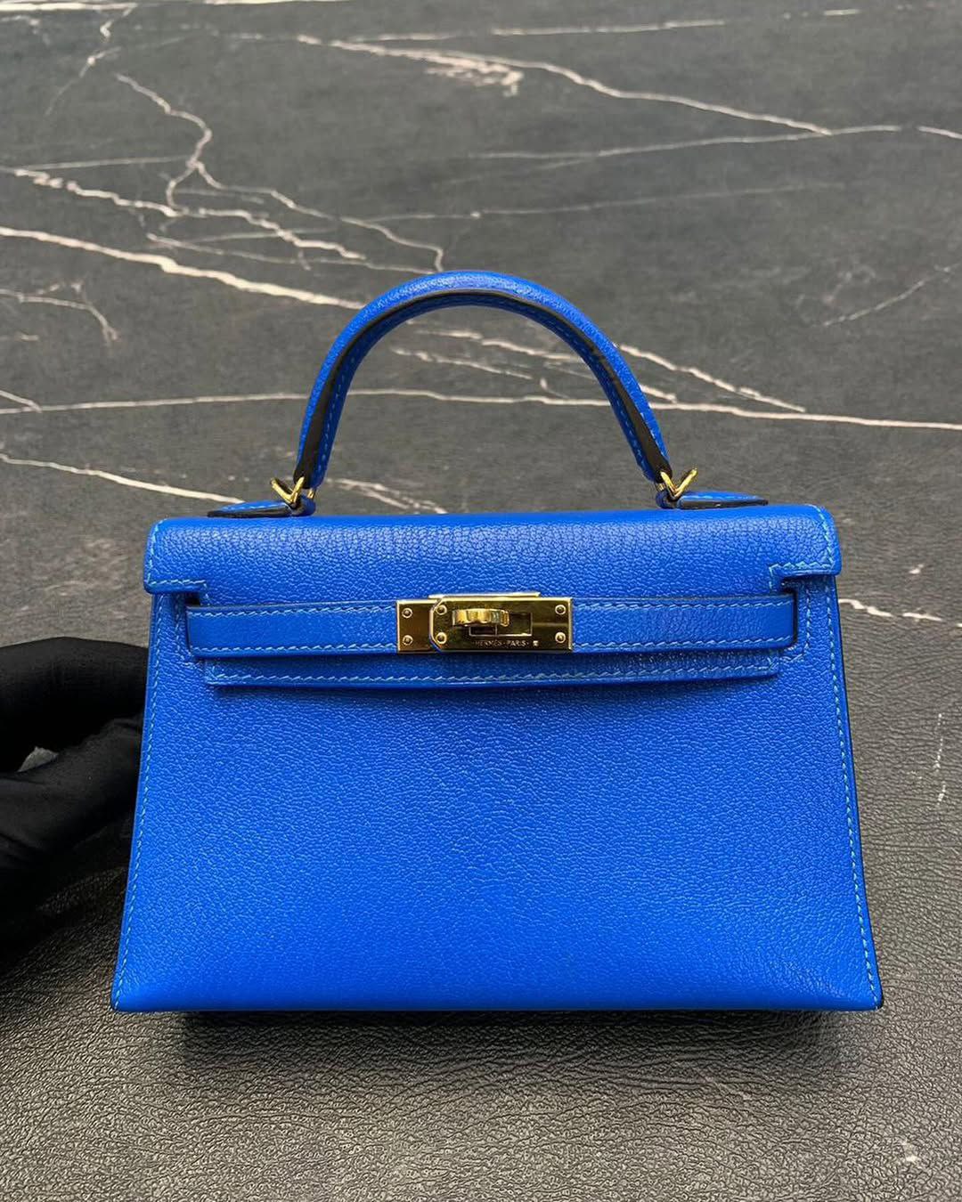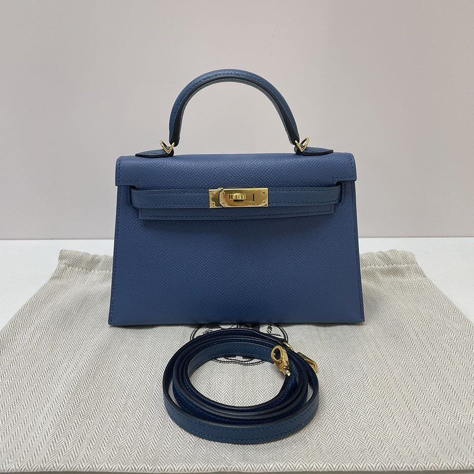 HermΓ¨s Mini Kelly β Blue Agate Epsom with GHW